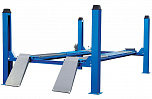г/п. - 4 т. Для подъема легковых автомобилей всех моделей и марок при их техническом обслуживании и ремонте. Максимальное расстояние между подхватами: 2550 мм. Высота подъема лап (с подхватами): 1800 (1990) мм Длина задних лап: 780-1200 мм. Длина передних лап: 780-1200 мм. Толщина металла в стойках - 5,2 мм, толщина тросов синхронизации - 9 мм. Вес: 630 кг.