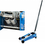 Для профессионалов. Двухплунжерный механизм быстрого подъема. Домкрат имеет повышенную износостойкость. Подкатной. Грузоподъемность 3 тонны с усиленной конструкцией. С тавотницей и резиновой накладкой на чашку домкрата в комплекте. Высота подъема 130-460 мм. Вес: 31,5 кг.