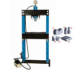 Пресс пневмогидравлический 50 тонн, для автосервиса. Ход поршня 0-230 мм. Рабочее окно 650х815 мм. Управление ручное/пневматическое, манометр, ручная лебедка. Рекомендуется для выпрессовки подшипников, деталей машин, втулок и т.п. в автосервисе, Гараже и СТО. Цвет синий. Доставка по РФ и ТС. Подъёмная площадка регулируется по высоте и фиксируется в требуемом положении.