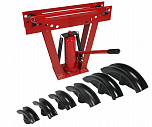 12 тонн. На подставке. Трубогиб для трубы диаметром от 1/2 до 2 дюймов (15-50 мм) с толщиной стенки трубы (2,75-3,5 мм). Ход поршня 230 мм. В комплекте 6 пуансонов: 1/2", 3/4", 1", 1-1/4", 1-1/2", 2".