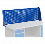 Экран подходит для установки на верстак шириной 1400 мм. Материал перфопанели: холоднокатаная сталь 1 мм. Тип перфорации: комбинированная (квадрат – круг). Покрытие: порошковая краска, цвет синий Ral 5017. Кронштейны - оцинкованные(опция).