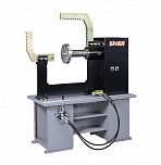Для правки сложных ремонтов всех видов, в том числе «восьмерок», спиц (от 22-х дюймов, ремонт с мобильным кронштейном). Рама допускает нагрузку до 12 тонн. Вал из стали особой прочности. Станок оснащен специальными болтами, усиленной планшайбой и электроприводом вращения вала, который облегчает зоны правки и качество работ. Конструкция гидроцилиндра фиксирует его в любом положении так, что правка производится одной рукой, без удержания гидроцилиндра на весу.
