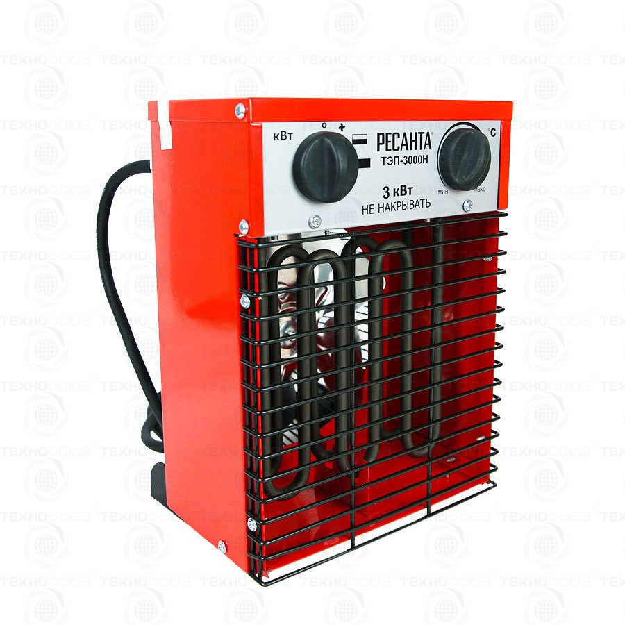 Тепловая электрическая пушка РЕСАНТА ТЭП-3000Н предназначена для вентиляции и обогрева жилых и производственных помещений, складов, гаражей, а также для обогрева и сушки в строительстве.