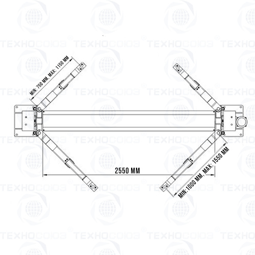 Двухстоечный подъемник с нижней синхронизацией и грузоподъемностью до 4 тонн, предназначен для подъема легковых автомобилей, внедорожников, пикапов и легких грузовиков с последующей фиксацией на рабочей высоте с целью ремонта или технического обслуживания как в небольших автомастерских, так и в крупных автосервисах. Расстояние между стойками проездное – 2550 мм. Длина задних лап: 1000-1550 мм. Длина передних лап: 750-1150 мм. Высота подъема лап (с подхватами): 1800 (2025) мм.