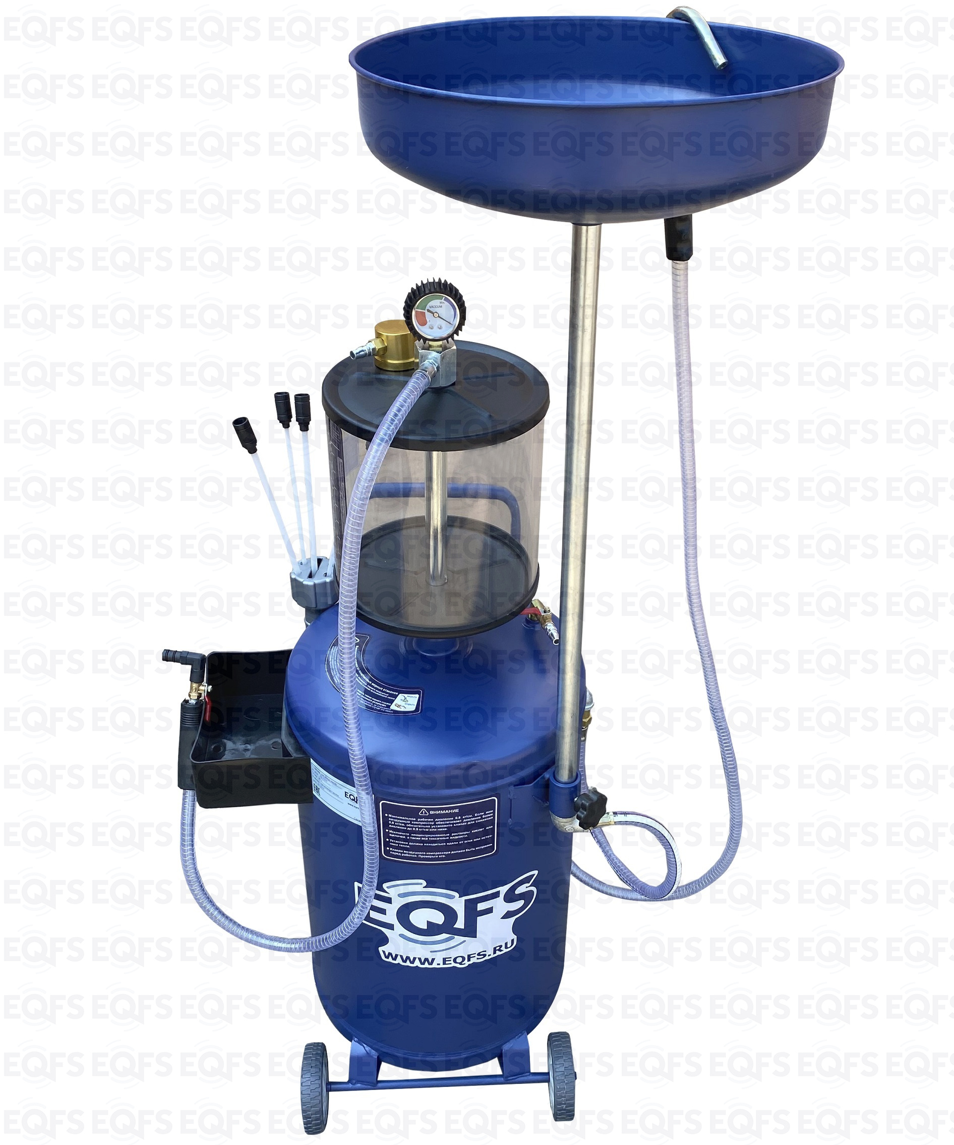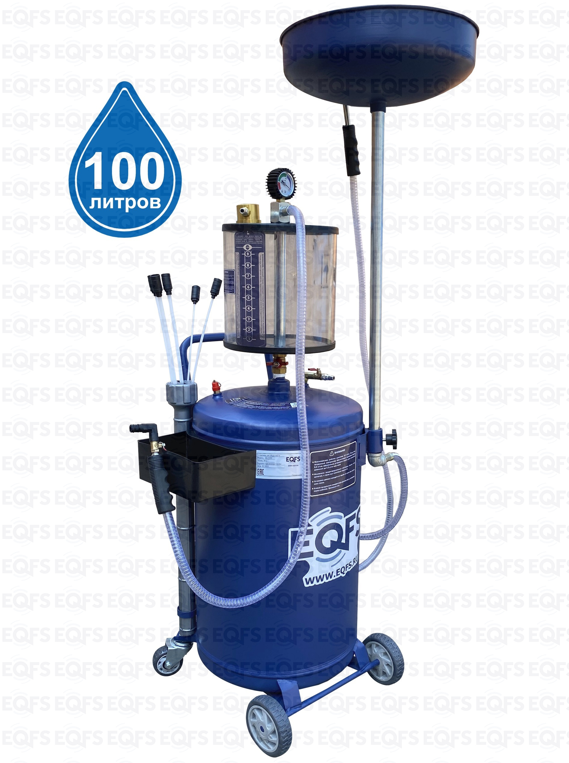 Установка для слива и откачки щупами масла и антифриза из ДВС, КПП и мостов всех авто. В комплекте: Колба + сливная чаша с сеткой для улавливания мелких деталей + щупы гибкие 5 шт. + лоток для сливной пробки + стрелочная индикация уровня разрежения + визуальный контроль уровня отработки + пистолеты для откачки масла + быстросъёмный штуцер для пневмолинии + сепаратор для выхода воздуха. Вмещает 100 л. = Бак 80л + колба 10 л. + сливная воронка 10л.