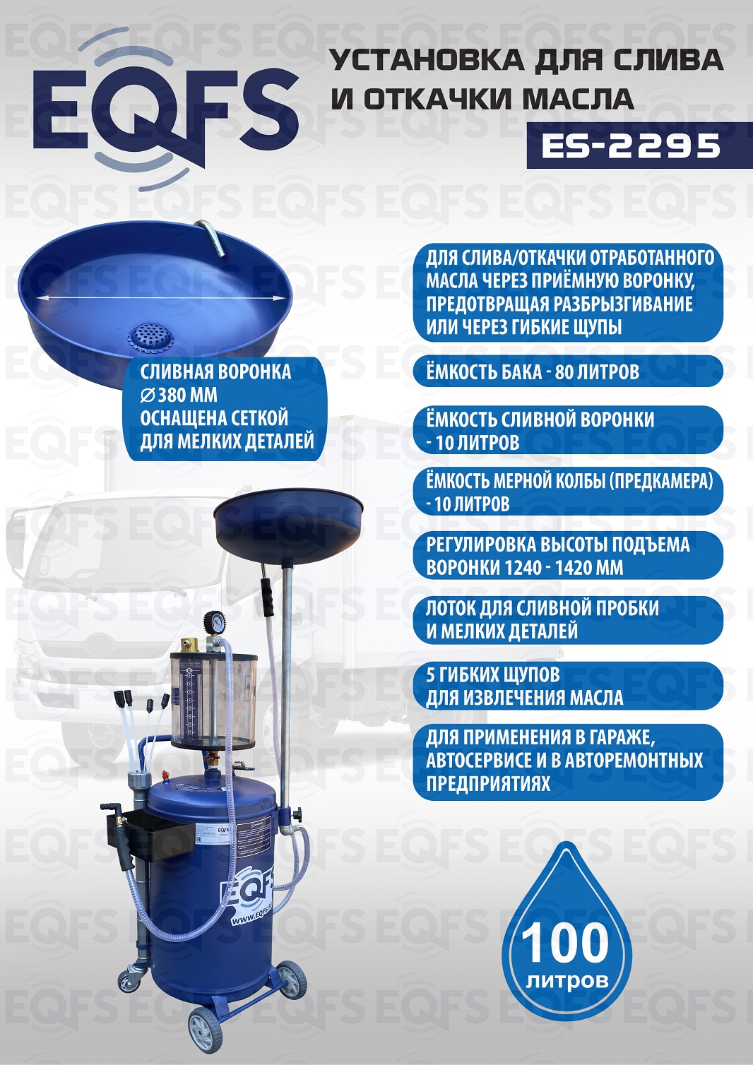 Технические особенности установки для слива и откачки масла щупами ES-2295:
