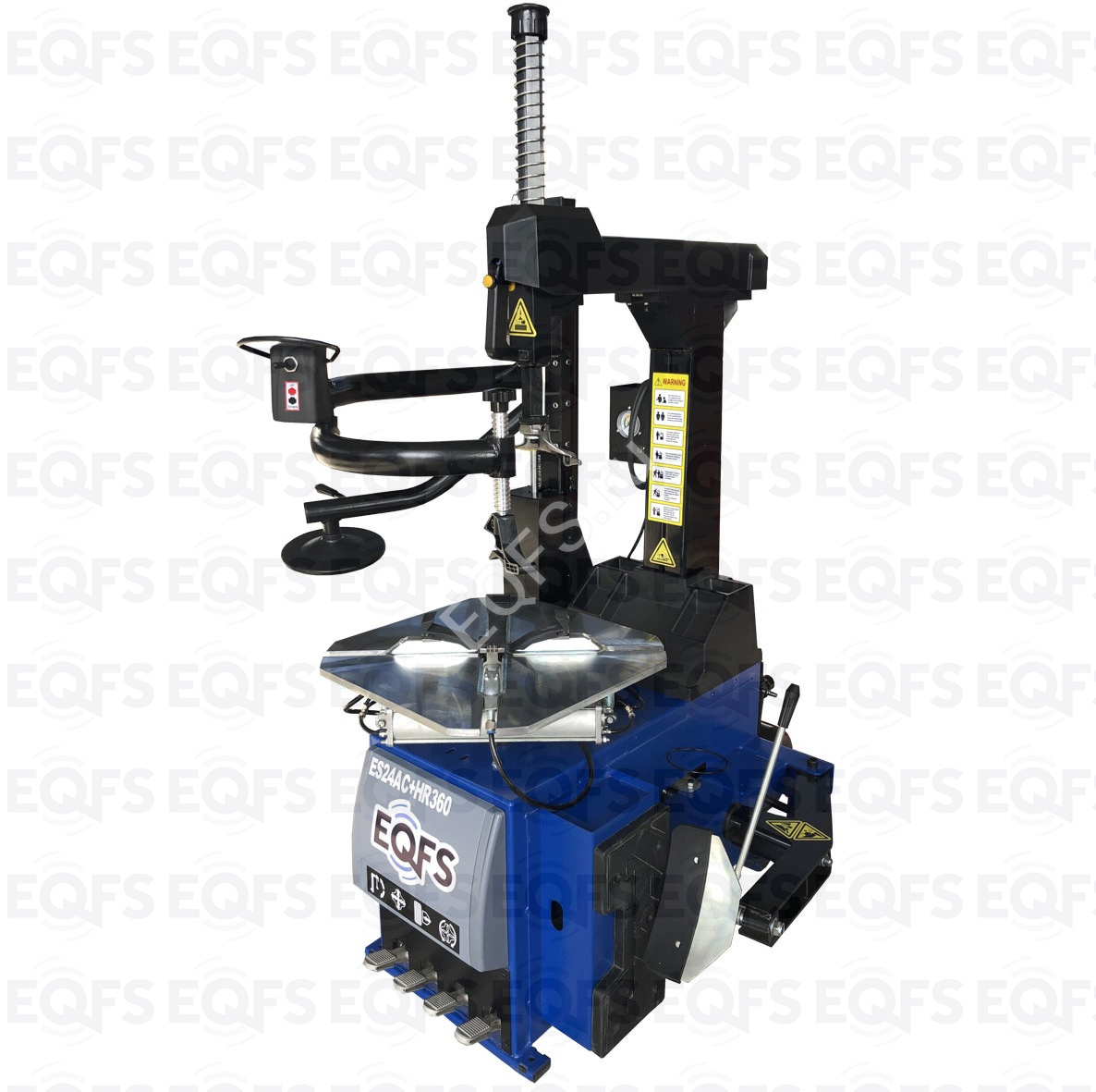 ES24AC+HR-360 Шиномонтажный станок. Автомат. Большой квадратный стол. Для колес с размером от 10-24 дюйма. Усилие отжима увеличено до 2700кг. В комплекте взрывная подкачка + третья рука для работы с низкопрофильными шинами и RanFlat + встроенный бустер 24 литра (взрывная подкачка) + пистолет для подкачки шин + монтажка + регулятор давления с влагоотделителем и манометром.