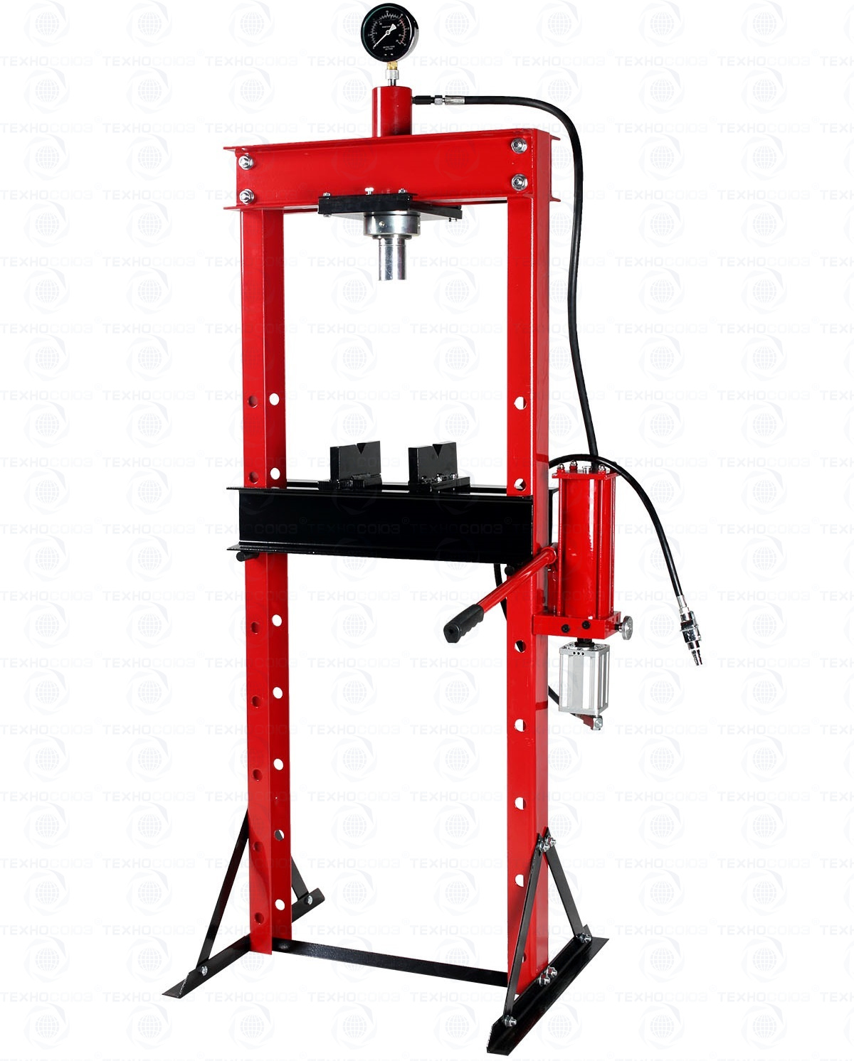 Пресс гидравлический оснащен насосом с ручными и пневматическим приводом с максимальным усилием 10т.