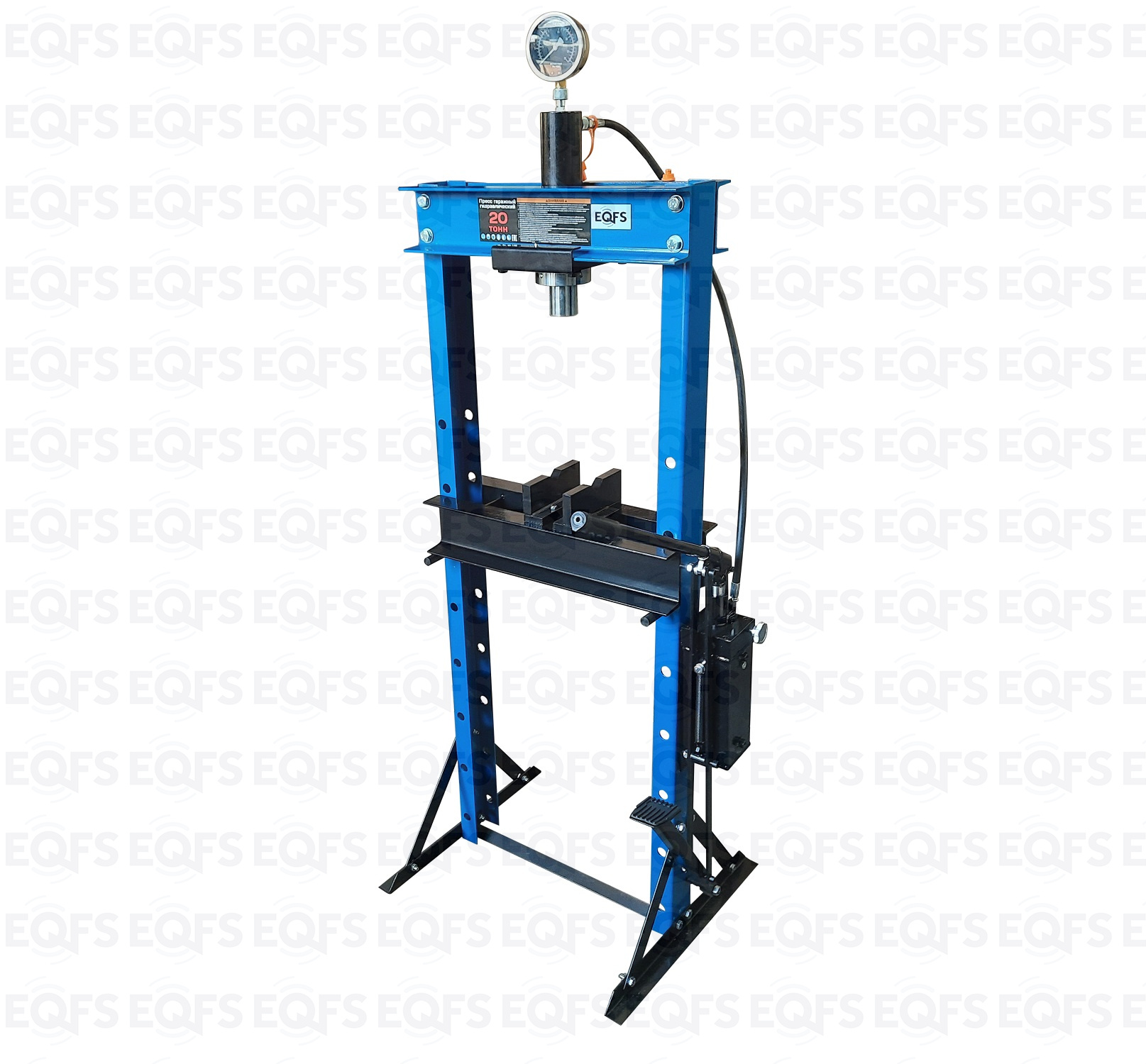 Пресс гидравлический ручной укомплектован насосом с одной плунжерной парой и максимальным усилием 20т.