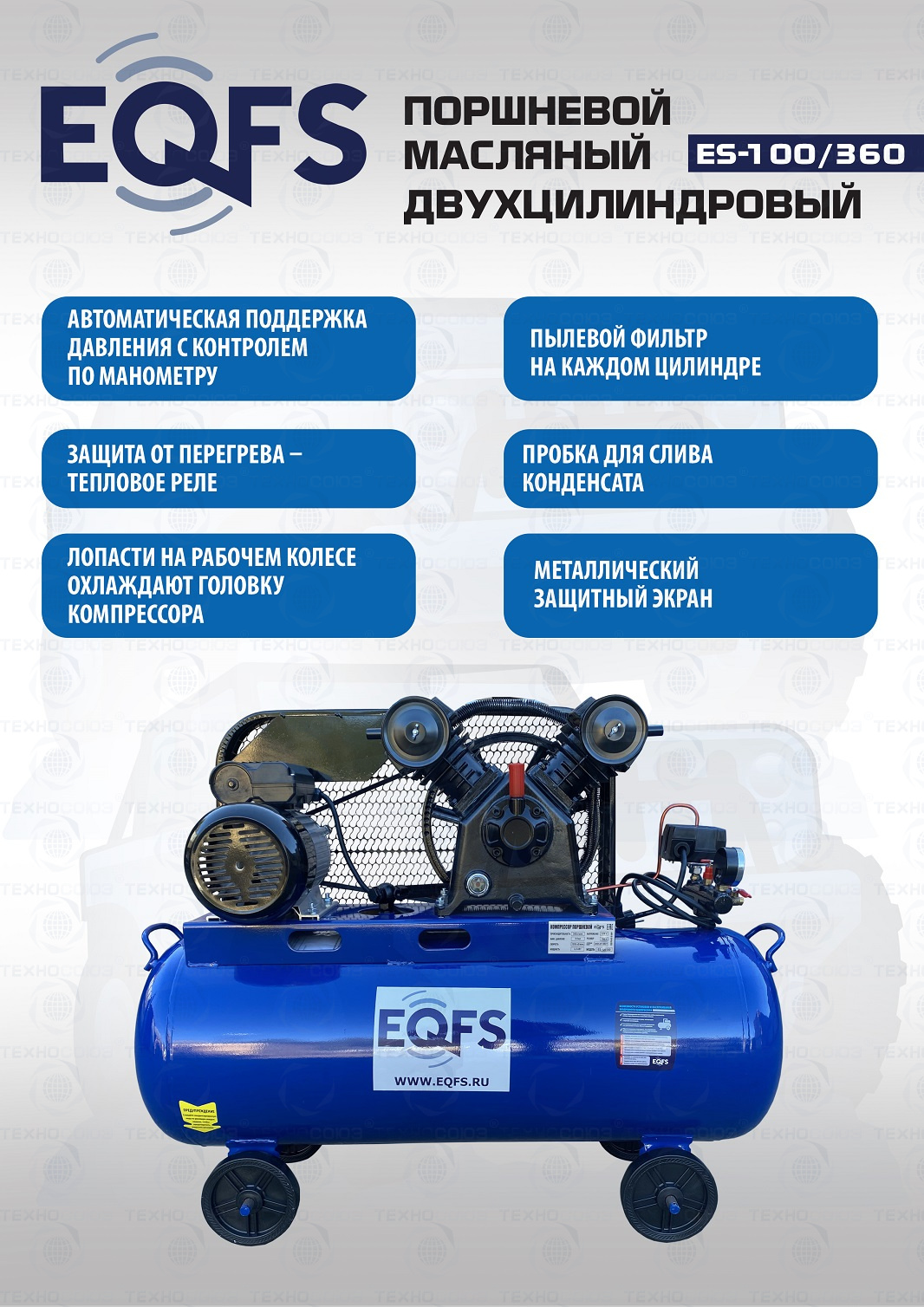 + компрессор поршневой трехцилиндровый производительностью 360 л/мин