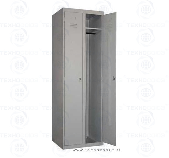 Шкаф раздевальный ШРК - 22 - 800. Шкаф состоит из 2 секций, перекладины, полки, 2 крючка, замка с полимерным покрытием. Размеры: 1850x800x490 мм