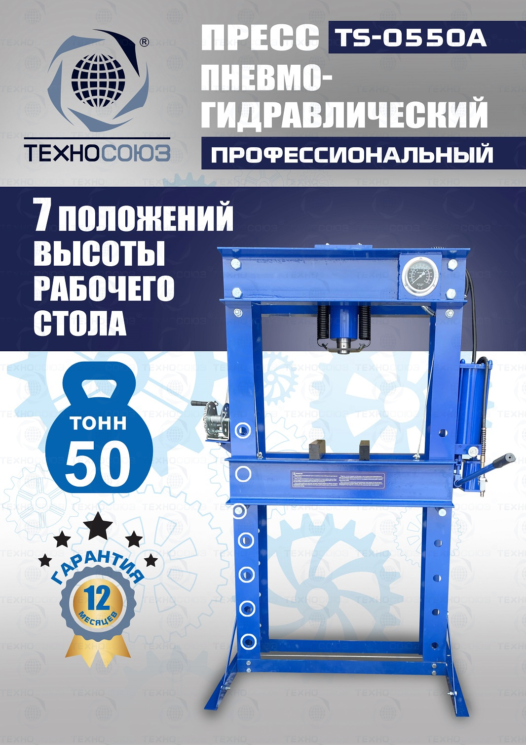 Конструктивные особенности TS-0550A Пресс 50 тонн пневмогидравлический / ручной :